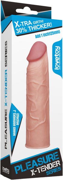 The Love Toy Pleasure X-tender, available at our adult store, is designed to offer incredibly lifelike sensations both inside and out. It provides an extra 1 inch in length and a 30% increase in girth, ensuring perfect performance. You'll appreciate the penis extender's realistic softness over your shaft, while the 'trim-to-fit' shaft ensures a customized fit and maximum control during use.