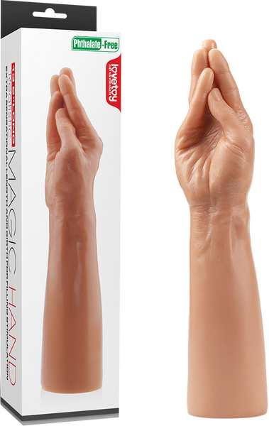 The 13.5" King Size Realistic Magic Hand, available at our adult store, is designed to provide an extra-realistic experience. Made from premium, phthalate-free PVC material, the tapered fingers and graduated shaping make for easier insertion, while the soft edges and slight flexibility offer total comfort. With a size of 13.5" in length and 3"-3.5" in width, this hand-shaped fist dildo will elevate your pleasure to new heights.