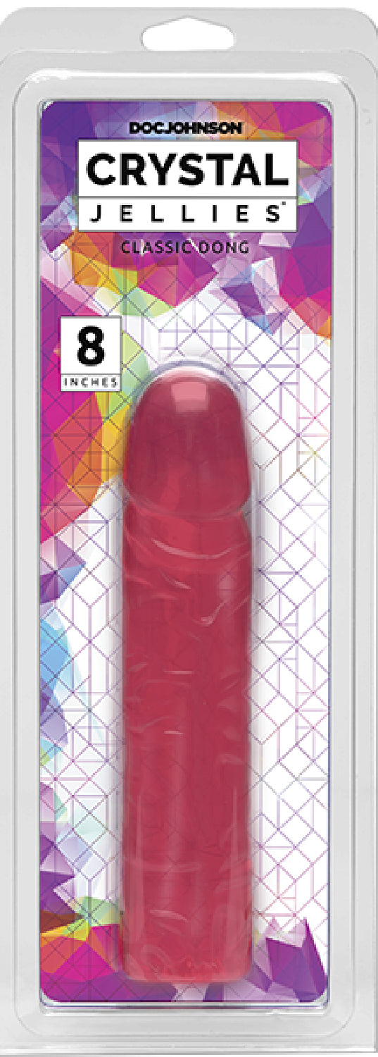 Doc Johnson's 8" Crystal Jellies Classic is a soft and flexible variation of the original dong that started it all. This cock has the traditional thickness and veiny texture we all know and love, plus a flexible shaft and glistening color options! Available in Pink, Clear and Purple. All of our Crystal Jellies are from phthalate-free body-safe material and are Proudly Made in America.