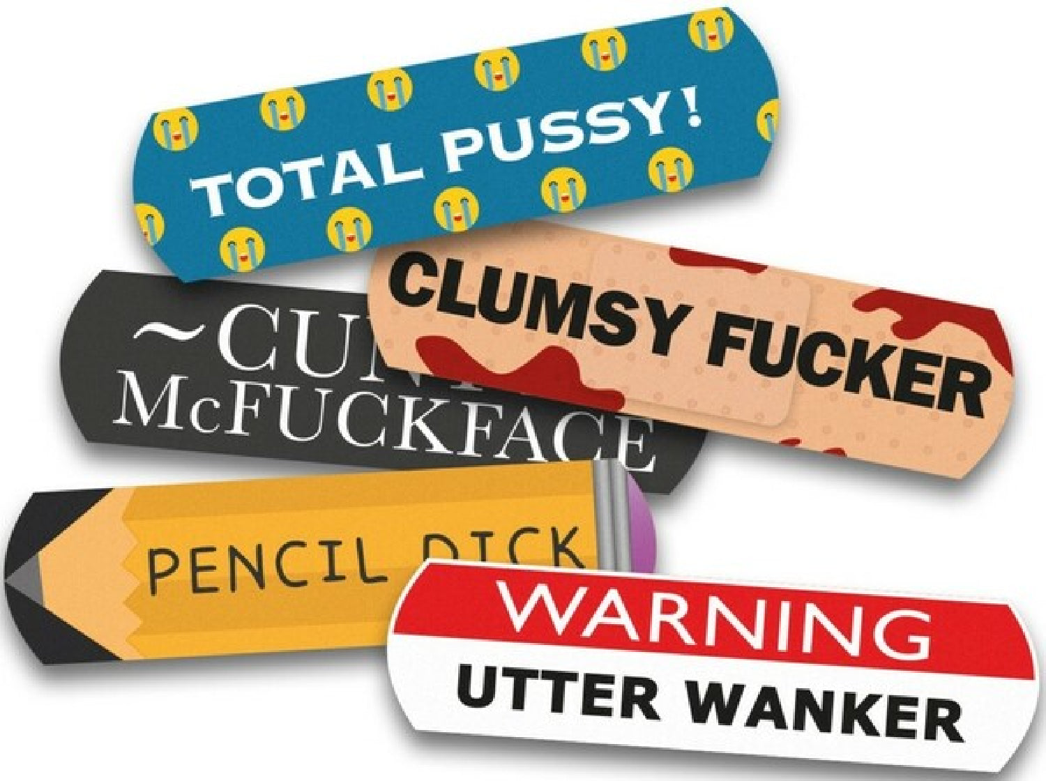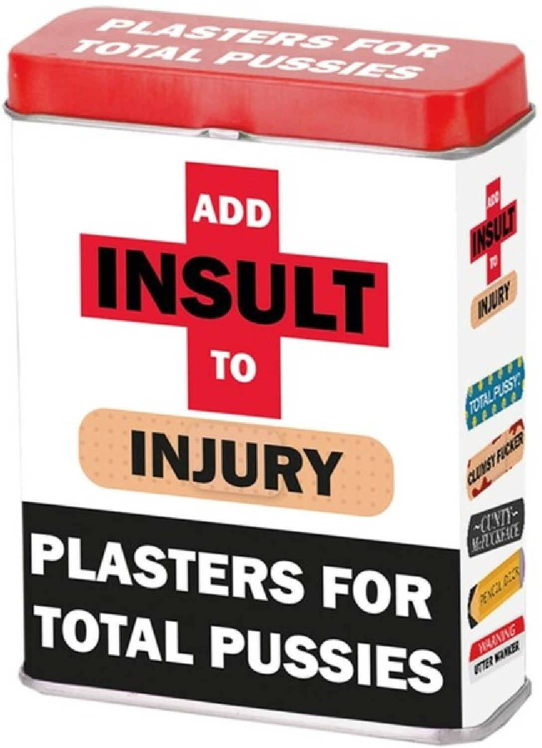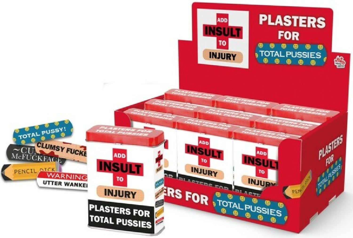 Plasters for total pussies. Each tin contains twenty-five offensive plasters which literally add insult to injury.