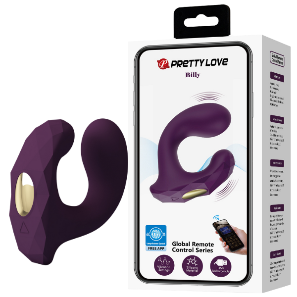 This C-shaped vibrator has dual motors and nestles inside the vagina to provide dual stimulation to her G-spot and clitoris as it vibrates in 12 tantalizing patterns.This couples' vibrator is made from non-toxic silicone that feels smooth and delicate against even the most sensitive skin, and glides comfortably with water-based lubricant. For even more fun, there are more ways to play thanks to the free Prettylove app! The app unlocks exciting toy features through your phone.