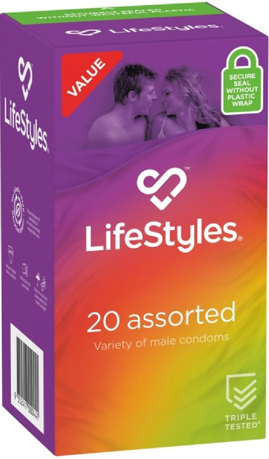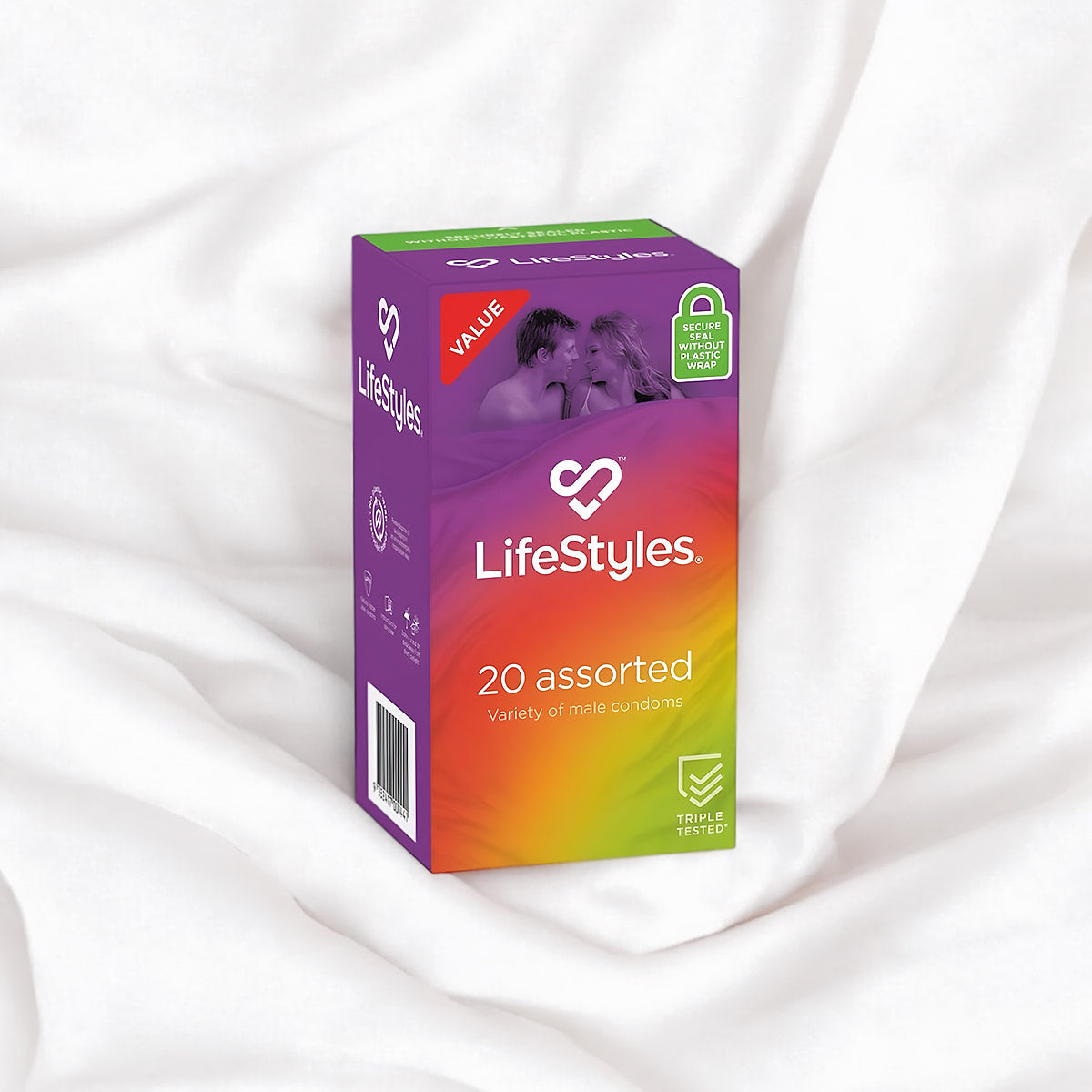 LifeStyles® Assorted condoms provide the ultimate in fun, with a mix of different condoms that may include a combination of colours, textures and flavours.
