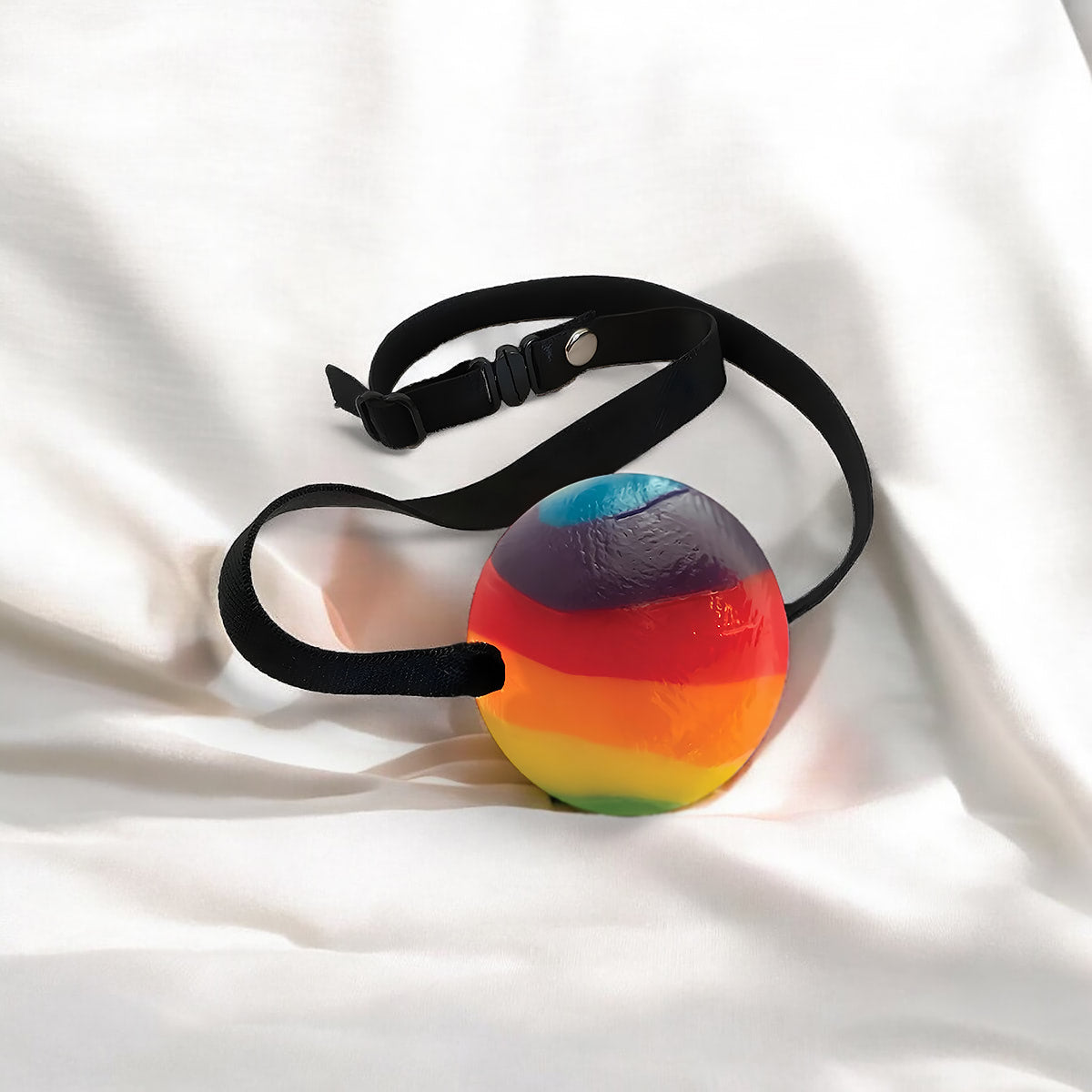 Get down and go "Balls To The Wall" with this great tasting Erotic Rainbow Candy Ball Gag! Mouth-watering Fun!