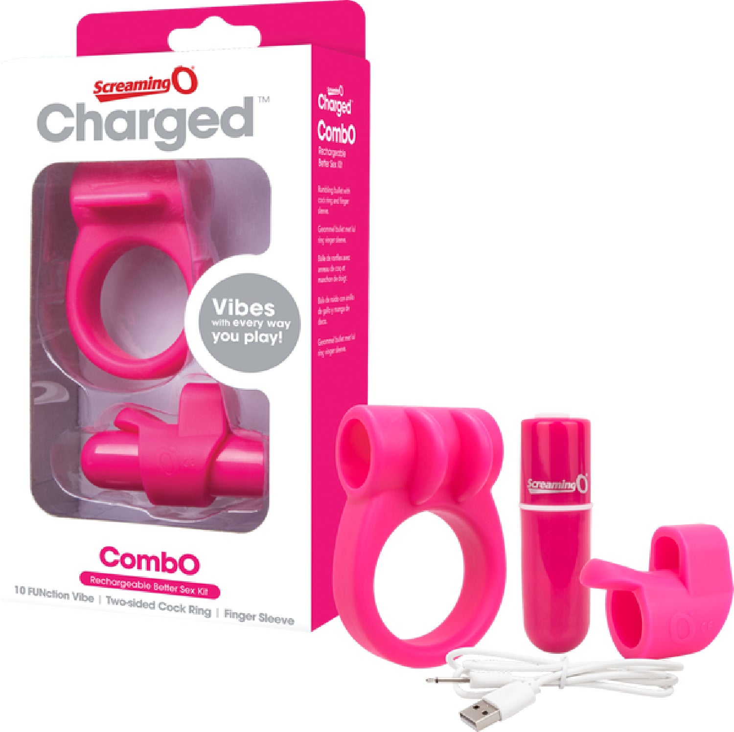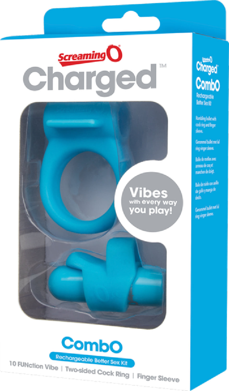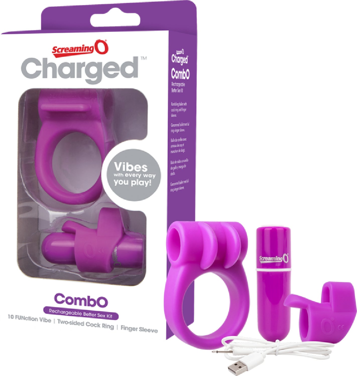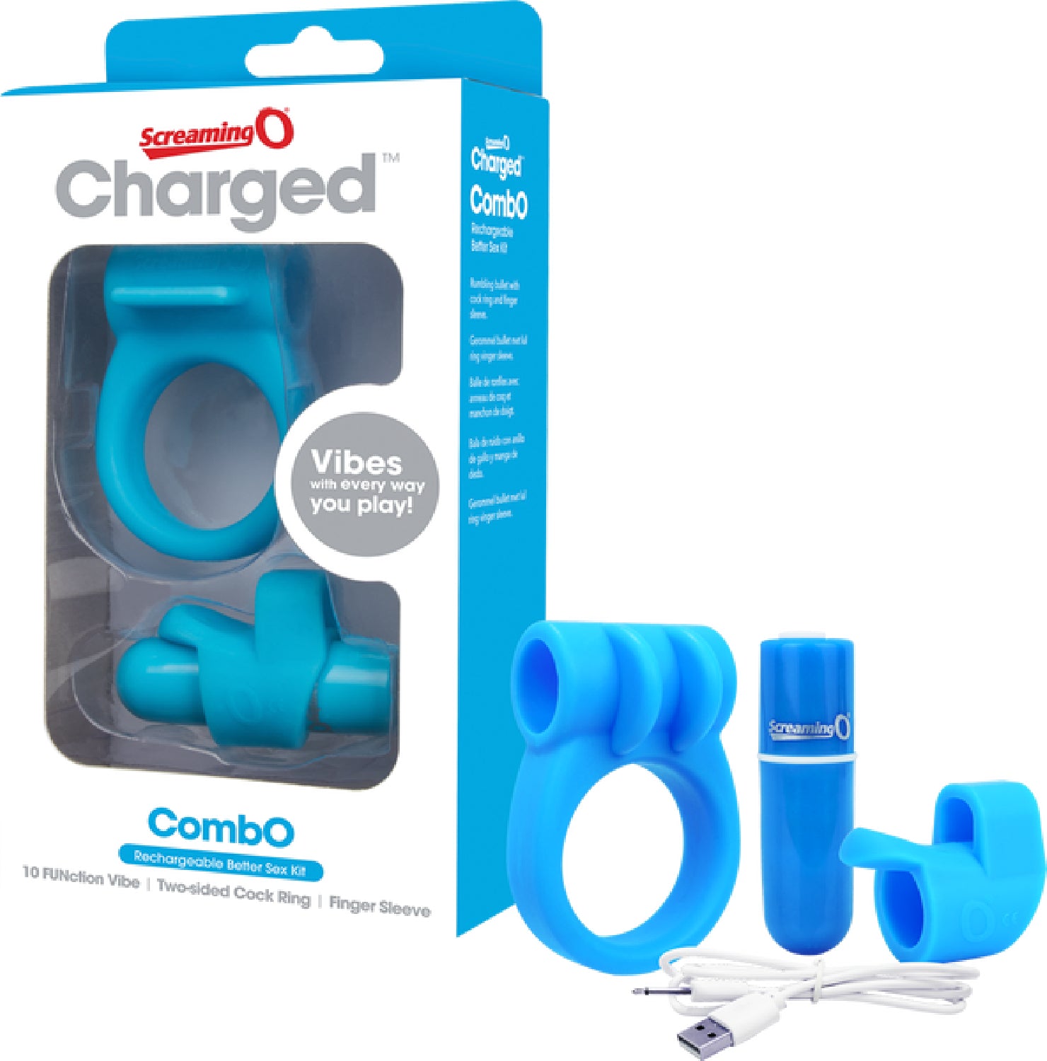 Enjoy all-in-one fun with Charged CombO Kit #1, a complete better sex kit powered by 10 FUNctions of deep rumbling Vooom® vibration. This convenient collection includes a stretchy two-sided cock ring and comfortable fingertip sleeve – both made of body-safe True Silicone® – for the widest variety at a value price.