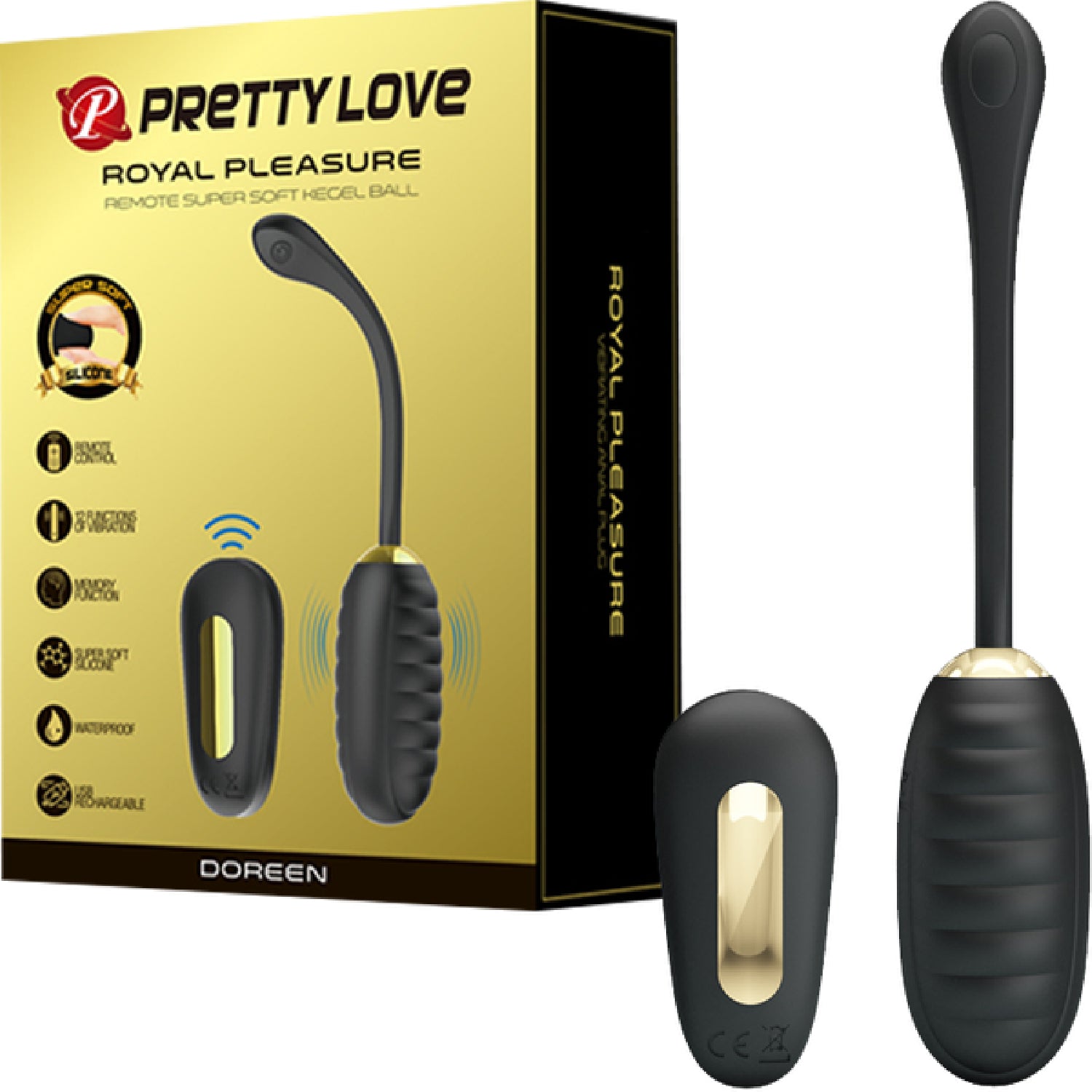 The Pretty Love Rechargeable Doreen is a high-quality love egg vibrator made from super soft silicone, featuring 12 functions of vibration and a memory function to remember your favorite setting. It also comes with a wireless remote control for solo play or couples play. The vibrator is fully waterproof, allowing you to use it in the shower or bath. Its black color with 24k gold accents gives it a luxurious and stylish look. This love egg vibrator is USB rechargeable, making it easy to charge and use whenever you want. Get ready for powerful orgasms with this sleek and versatile vibrating love egg.