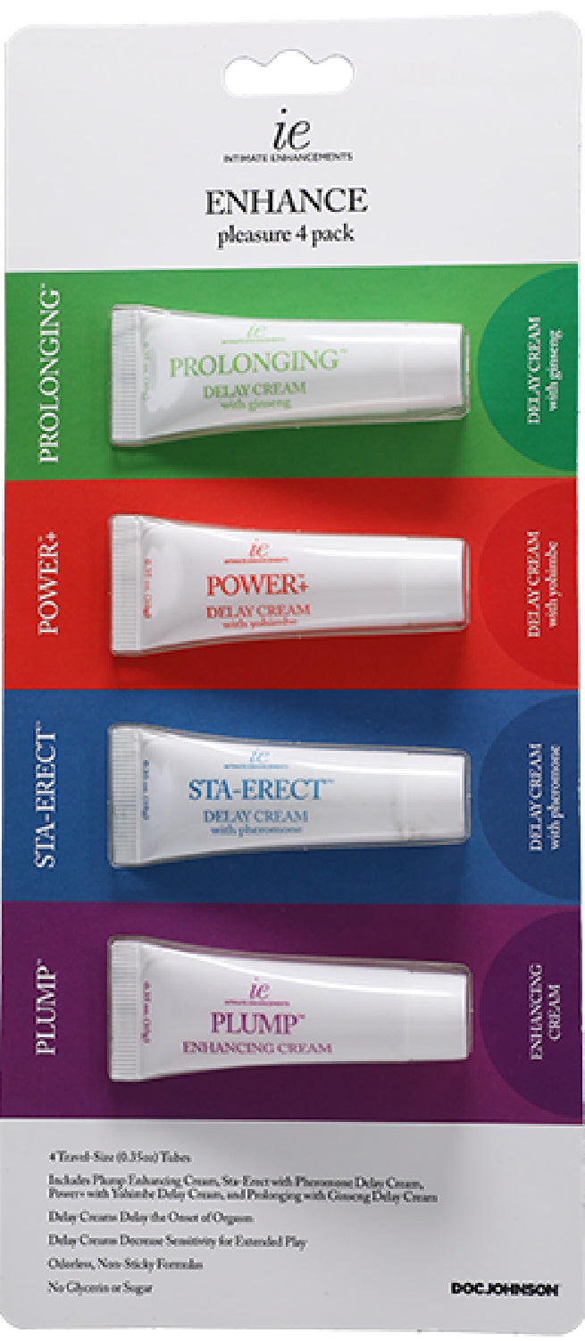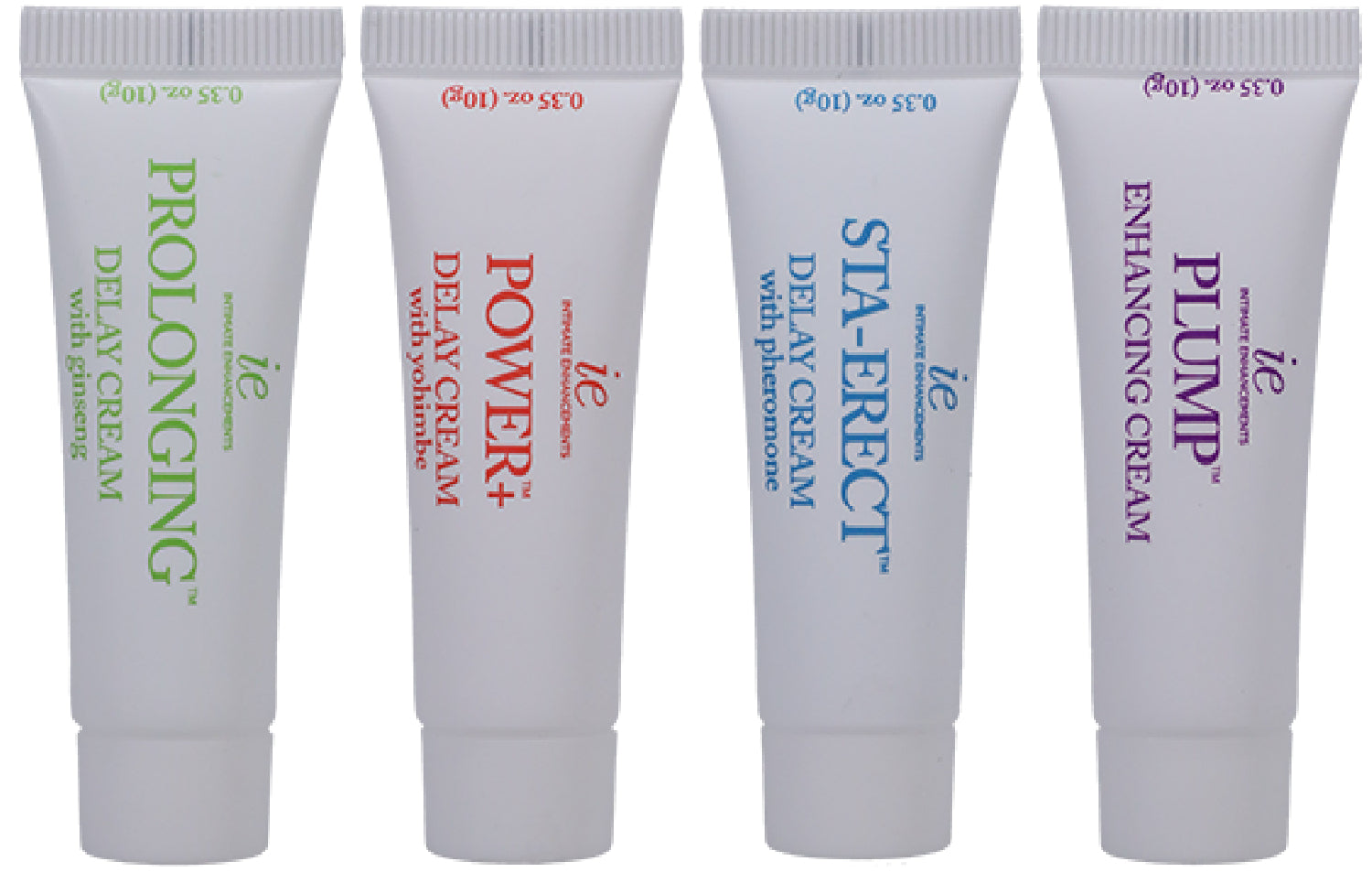 • Includes Plump Enhancing Cream, Sta-Erect with Pheromone Delay Cream, Power+ with Yohimbe Delay Cream, and Prolonging with Ginseng Delay Cream