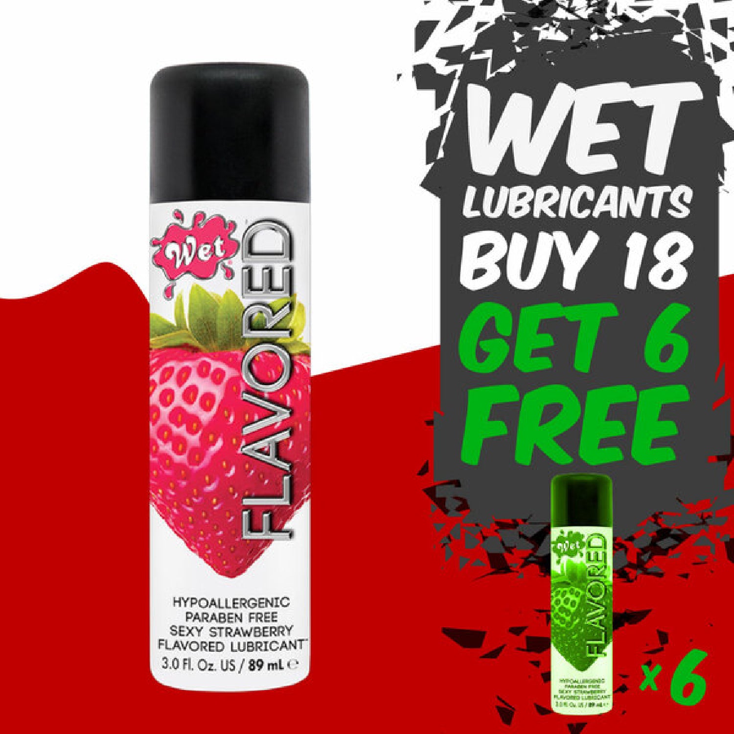 Entice the taste-buds (and your lover) with Wet® juicy, mouth-watering Flavored Lubricants. Indulge in the succulent tastes of Juicy Watermelon, Sexy Strawberry, Passion Punch, Popp'n Cherry, and Tropical Explosion. These fluid formulas quench intimate areas with a silky water-base and tantalize the tongue, leaving no bitter after-taste. Use during foreplay, oral, intercourse or massage. Every Wet Flavored Lubricant Feels Delicious!