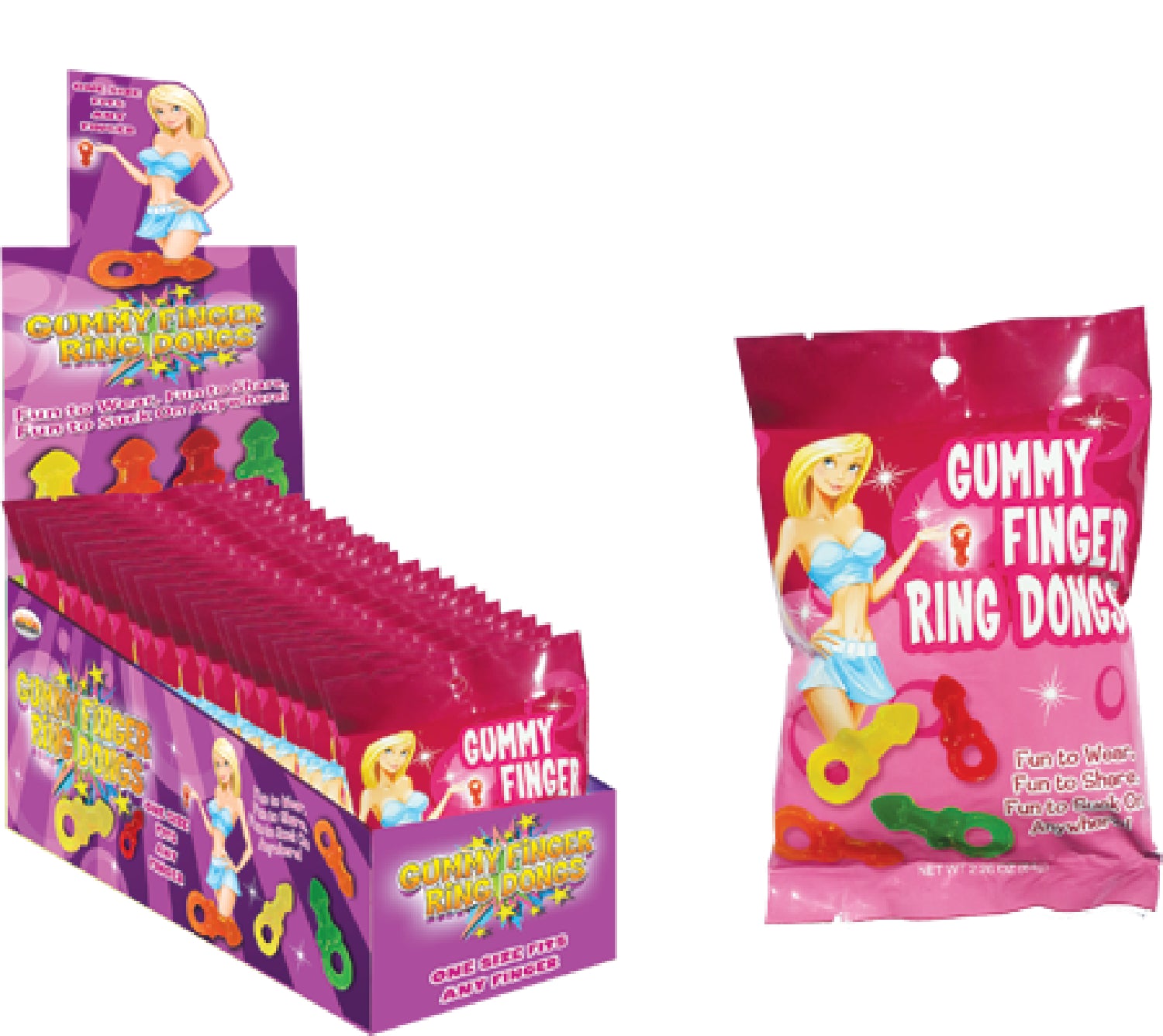 These Gummy Finger Ring Dongs are a great way for the girls to be able to wear their pecker candy on their finger.