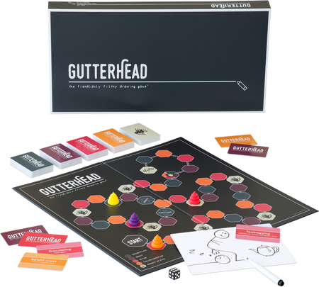 Then you should play Gutterhead, the fiendishly filthy adult party game where teams compete head-to-head to out-draw and out-guess their opponents. One member from each team draws the fiendishly filthy word while their respective teammates frantically try to guess the word before another team does. The first team to guess correctly wins the round.