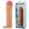This TPR material cock sleeve and penis sheath turns your penis into a pure sex machine. Features a stretchy shaft for enhanced internal stimulation. A highly recommended cock sleeve that gives your penis 35% extra texture. For a natural look and the base features a ball ring that hugs the base of your balls and will keep the extender in place and provide some erection prolonging effects.