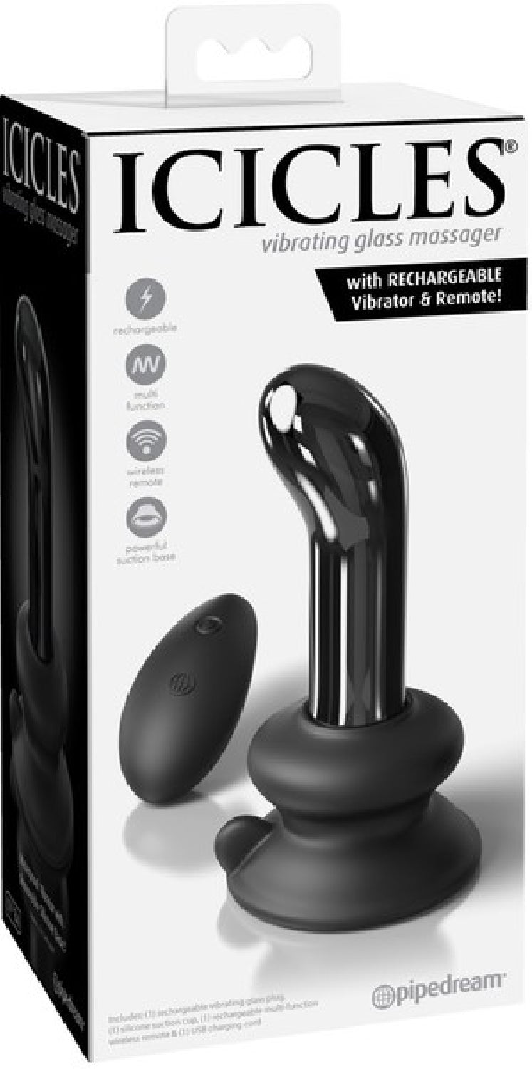 Icicle No. 84 is designed to create the ultimate experience in arousing solo sex sessions or share it with a partner for a sublime sexual adventure! This multi-function vibrating glass p-spot plug features a curved tip for precise pleasure, and a flared base for easy retrieval. The included wireless remote puts the control at your fingertips—or even better, in the hands of your partner! Cycle through 10 unique vibration patterns for truly intense, sheet-clutching orgasms!