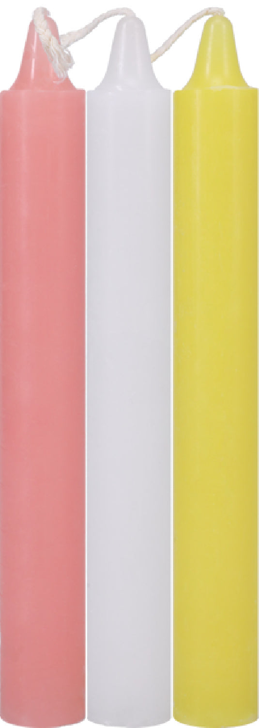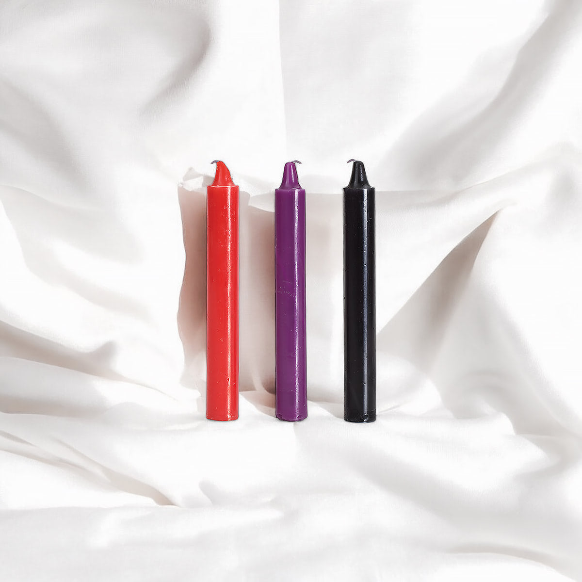 Candles are wonderful for setting the mood, but they're even better for 'pleasure and pain' sex play. Our Japanese Drip candles are the favorite for adventurous couples everywhere. Their warm drip teases and tantalizes in a way you will never forget! Comes in a three-pack of Red, Purple, and Black candles.