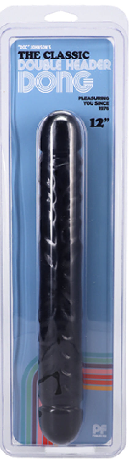 Warmed up for a classic doubleheader? Doc Johnsons 12 inch Jr. Double Header Dong has a phallic head on each end and a veined shaft for stimulating double penetration. The dong is flexible for individuals and just the right length to share with a partner. It is made from non-phthalate body safe material, which inlcudes Doc's anti-bacterial Sil-A-Gel formula and is proudly made in America.
