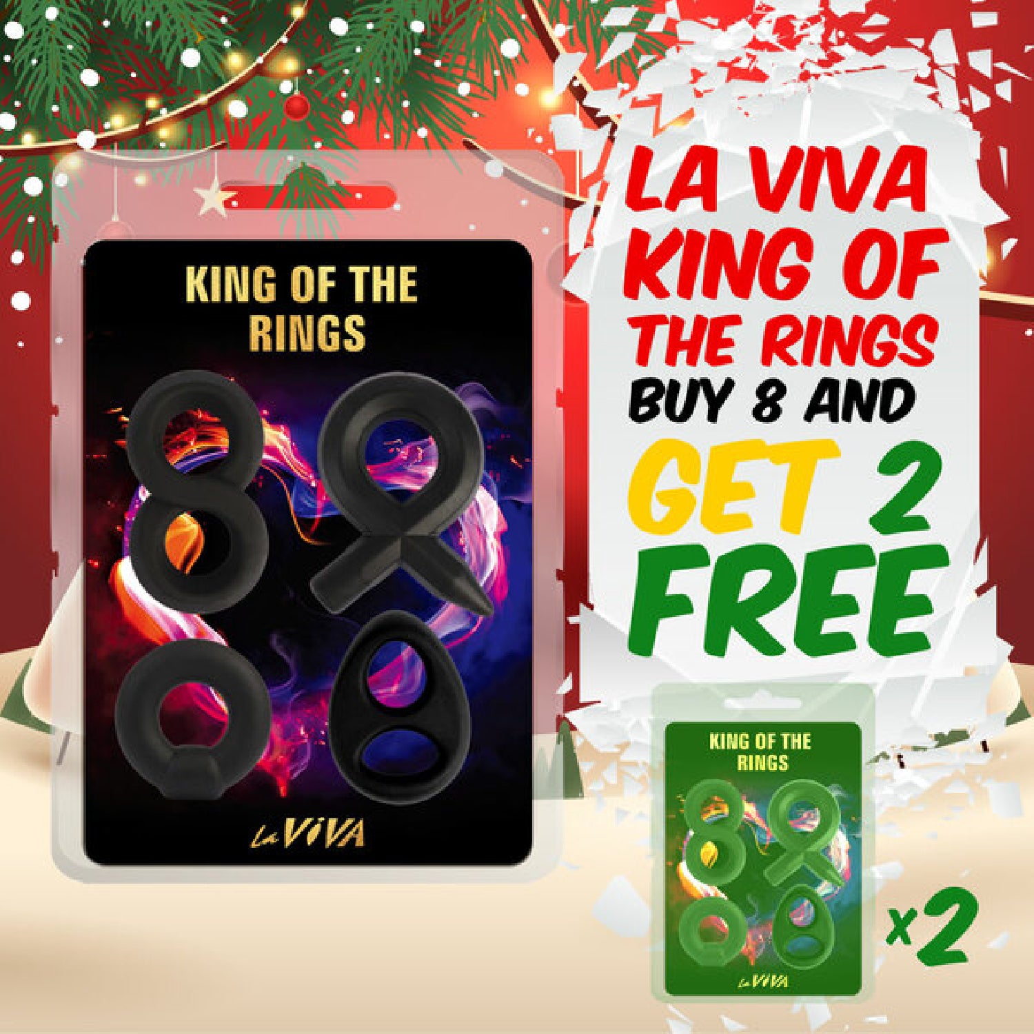 Laviva King of the Rings Silicone Cockring. Discover the power of endurance with these high-quality silicone cockrings. Designed to provide a snug and comfortable fit around the base of the penis, these rings can help maintain longer-lasting erections and heighten sensitivity. By promoting better blood flow, they offer increased firmness and control, allowing you to become the true king of pleasure in the bedroom. The smooth and stretchable silicone material ensures easy wear and removal, while also providing a luxurious touch to your intimate play.