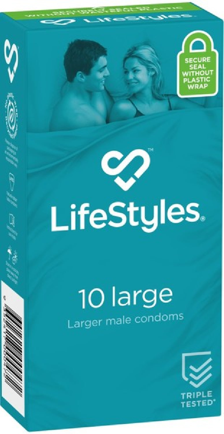 A larger fit condom in a special Easy-Fit shape, designed to make them easier to put on and for extra comfort during use.