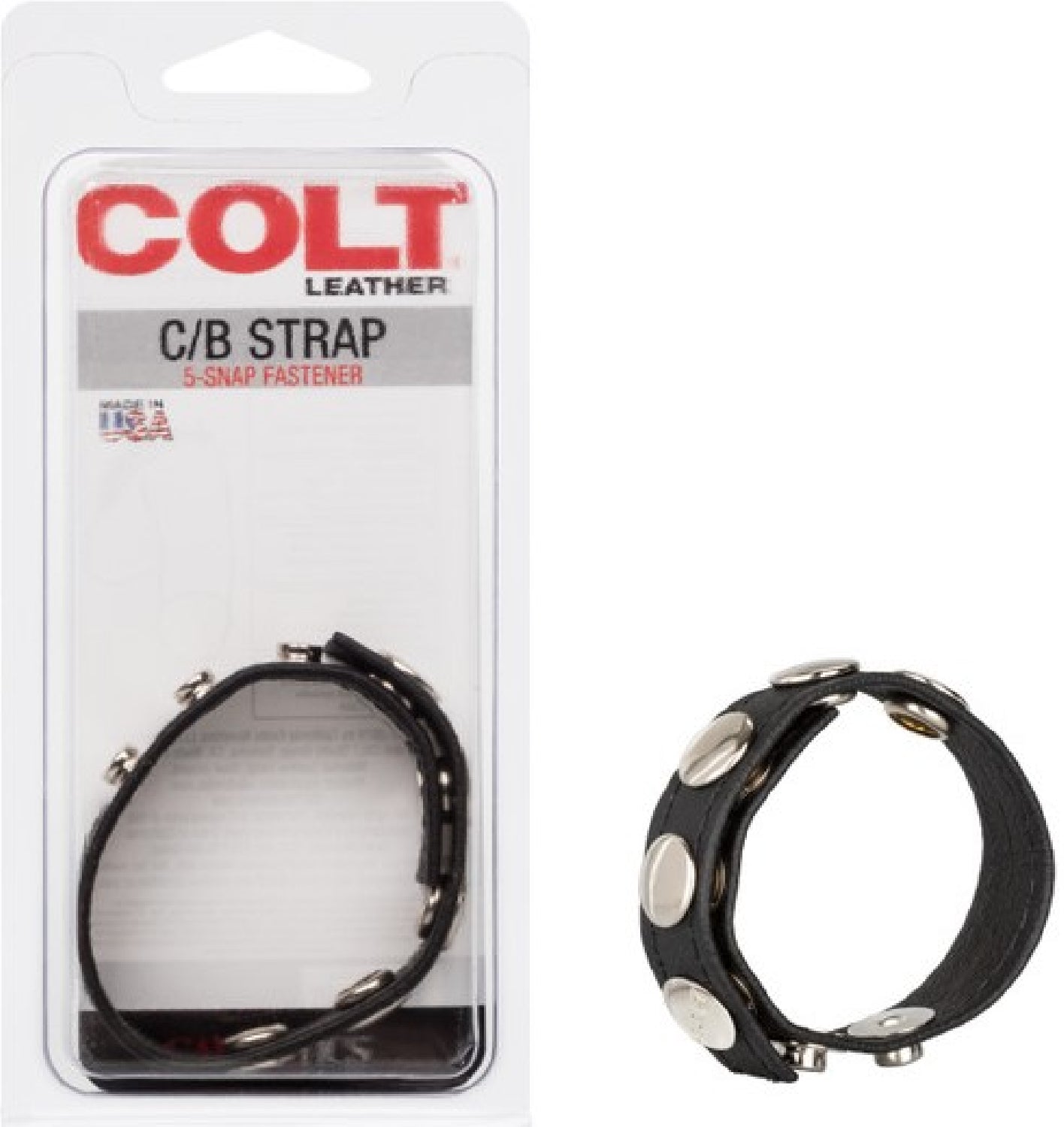 Perfect for letting them know who is boss, the COLT Adjustable 5 Snap Leather Strap will help convey strength and sexiness, so that you can indulge all your most wild fantasies. The black leather strap provides lift for your cock and balls, making the most man out of you. Yet, it is adjustable to comfortably fit any size cock so that you can go the distance without worry.