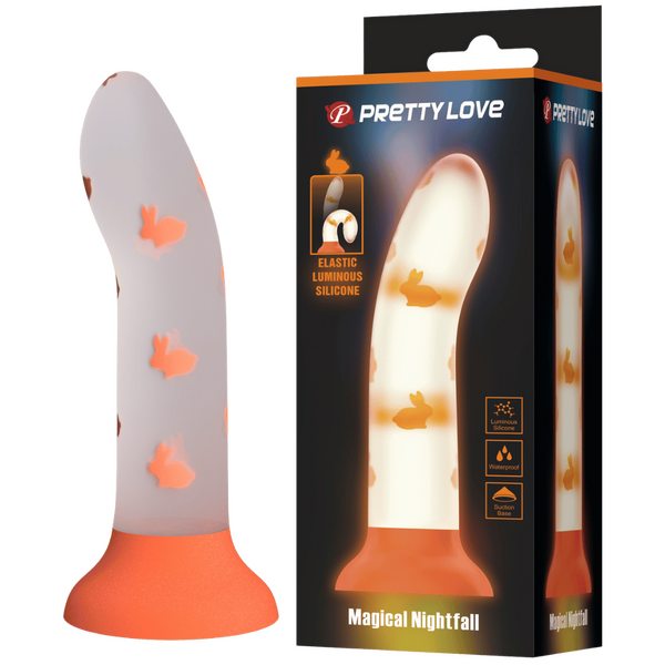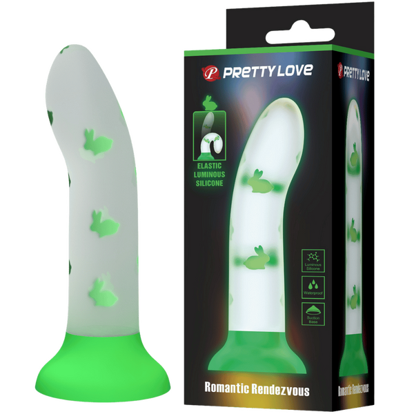 This large luminous dildo has many small bunny shape glowing inner cores that charges in the light for extra fun and pleasure in the dark! Its life-like large shaft is crafted with high quality and body-safe silicone for a real skin feel. It is easy to insert, glides as if by itself and adapts perfectly to the body and movements. With a strong suction cup sticking firmly and securely to any smooth surface for hands-free pleasure. With its suction cup, the dildo is also compatible with strap-ons and harnesses! Clean up in a snap with your favorite toy cleaner and a warm water rinse.