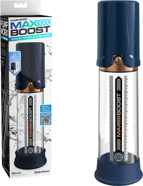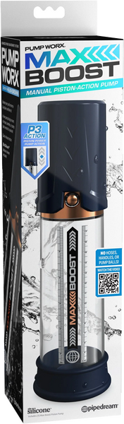 The in-line, manual piston-action pump design means that everything you need to start growing is built into the pump itself. No need to attach hoses or handles, no need to remember to recharge batteries, and no loud pump motors to ruin your discretion. Simply insert your penis, pull down on the pump head and release. You will be swelling with power in no time! The motorless design makes the Max Boost perfect for use in the bath or shower.For a heightened experience, try filling the tube with water before pumping.