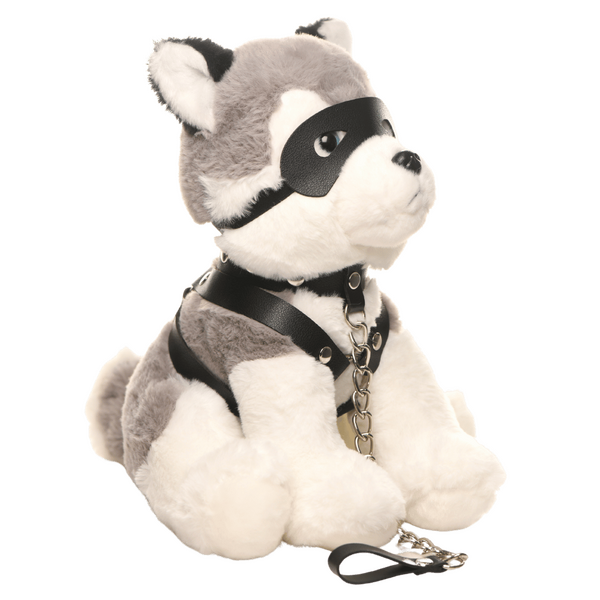 Ready to take home the goodest boi ever? This is Max, the Fetish Pup! This husky pup wants to go on a ride with you as you enter your first kinky space, offer after-care, or simply be lead around on a leash! Max comes with his very own vegan-leather harness, collar and leash, and mask! He may have a serious looking face, but he's so playful and perfect for cuddling! Give this novelty plush stuffed animal as a gag gift or as a sweet reminder of who your own best pup is!