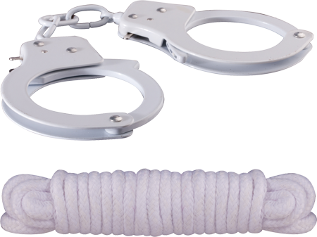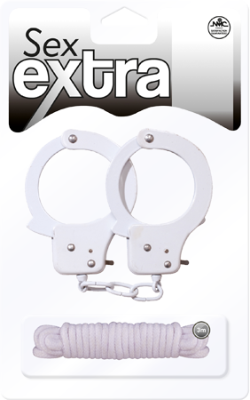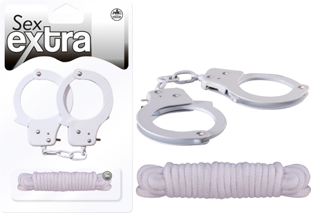 The Sex Extra Kit contains a matching set of metal handcuffs and love rope.
