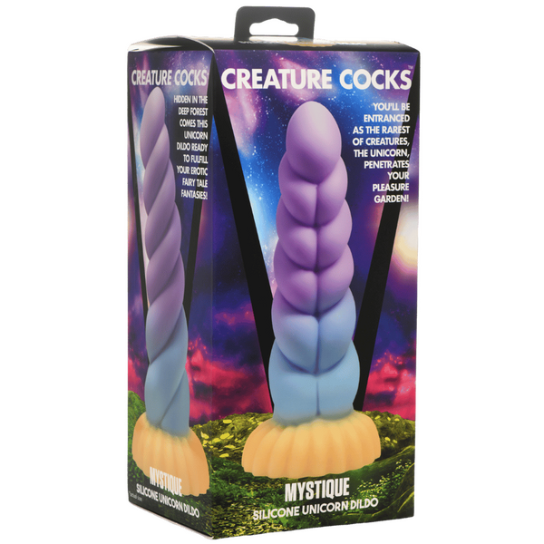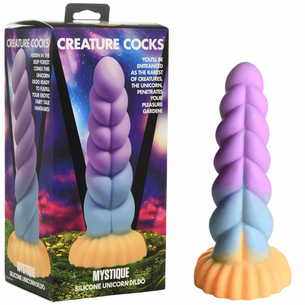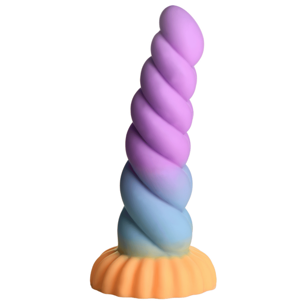 - Fantasy Dildo: The twisting horn has magical hues of orange, blue and purple. It's thick, swirled design is perfect for pleasuring your sensitive zones!