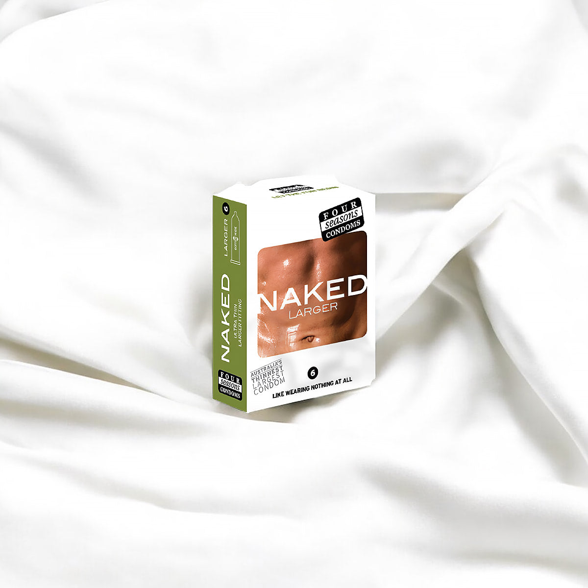 The Naked Larger Condom by Four Seasons Condoms is an experience so sheer you will not believe you are wearing a condom at all. Developed for men with a large penis size using the very latest condom technology.