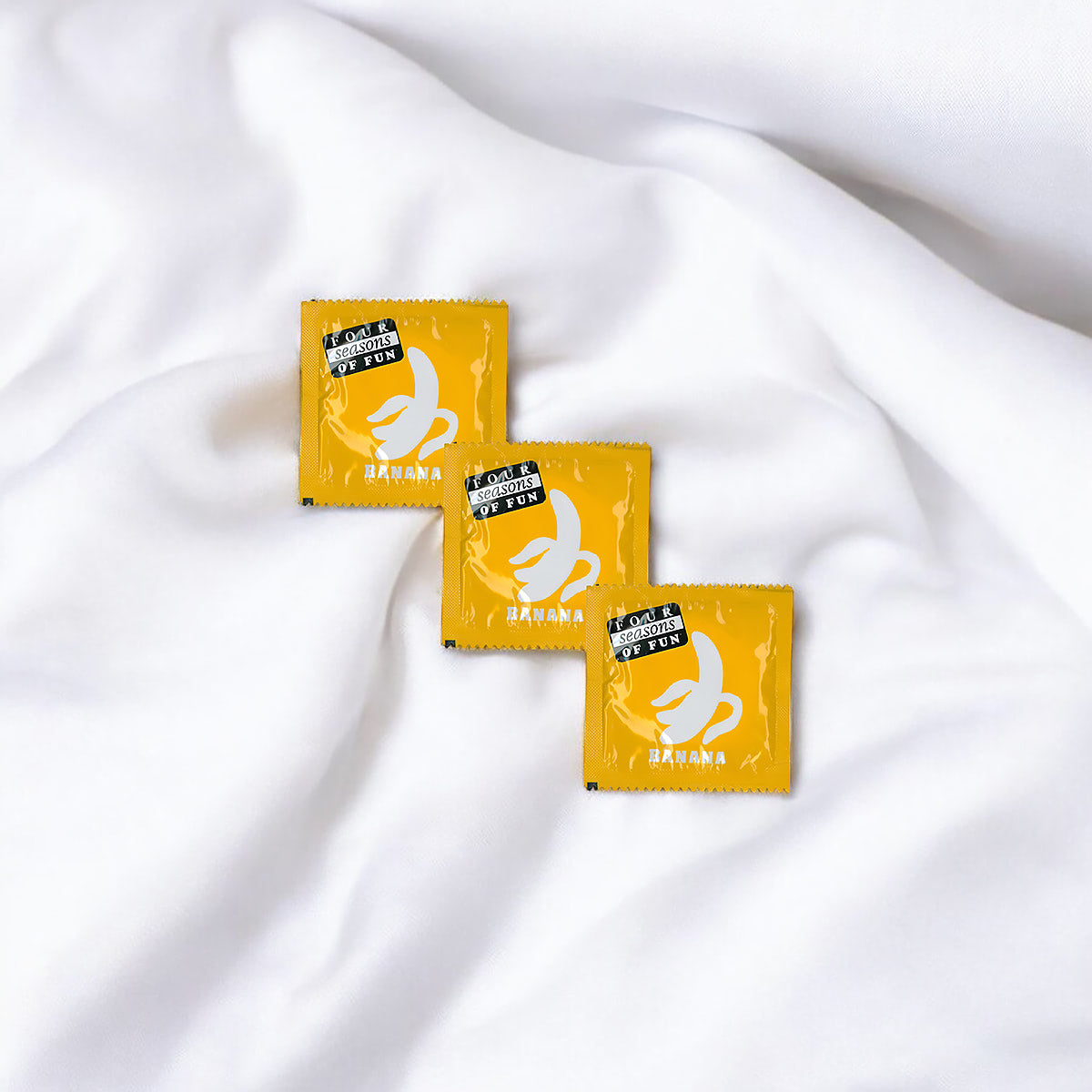 These are banana flavoured, yellow condoms with 54 mm nominal width.