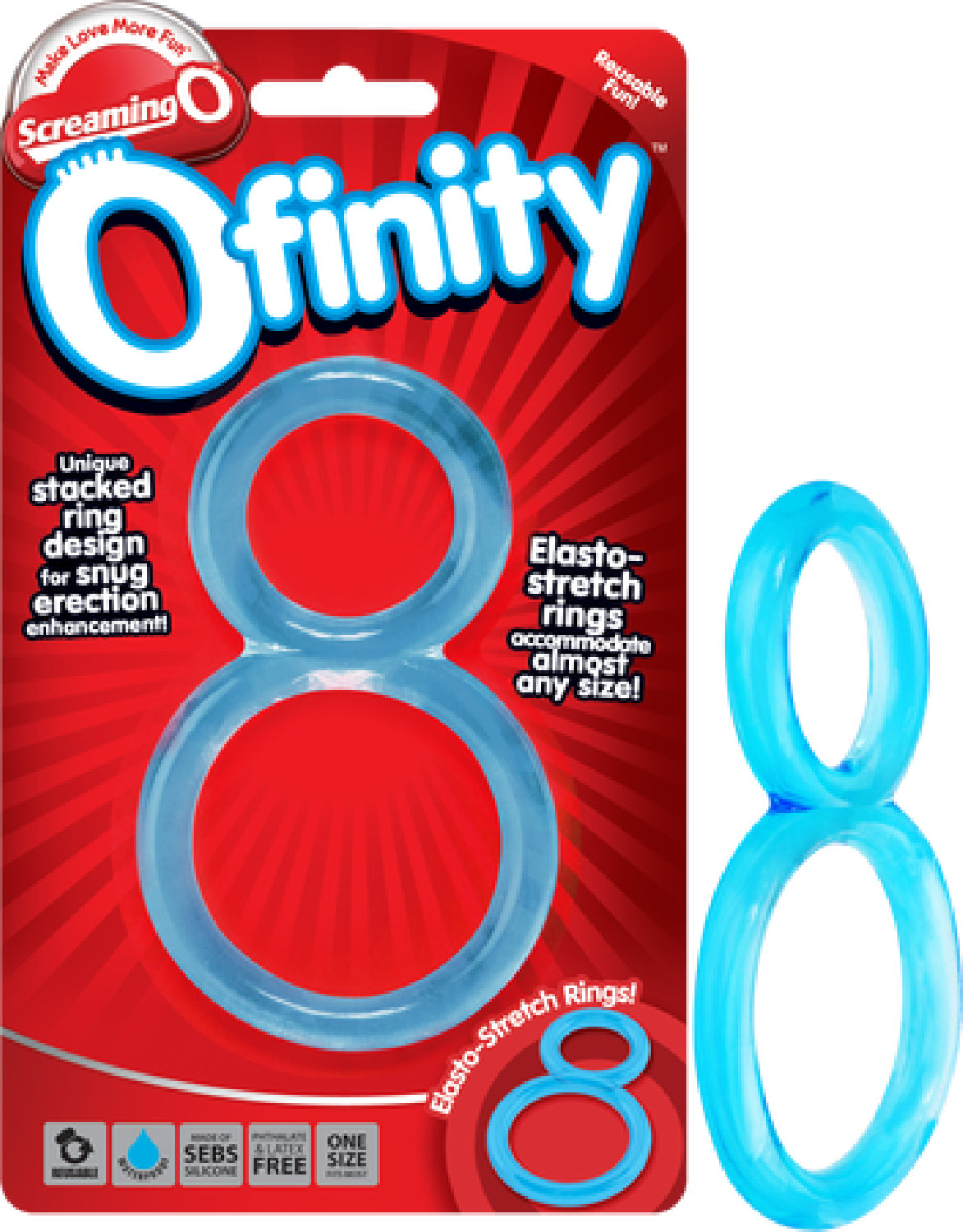 The Ofinity double erection ring gives men an (almost) eternal erection! Its unique isolation design constricts blood flow for concentrated enhancement that lasts and lasts and accommodates almost any size member. This stretchy cock ring has one purpose: to help keep his erections harder for longer. Simply stretch the top ring around the shaft and the bottom ring around the testicles and position them against the base of the body – they will fit tight and snug in order to slow circulation and help him maintain a stronger erection and last longer in the bedroom. This dual-action sex toy for men also helps increase sensitivity and promotes more intense and powerful orgasms, resulting in better and more satisfying sex with no limits! And the best part? When you’re done, simply wash the Ofinity with soap and warm water, towel dry, and keep it close and ready for your next encounter!