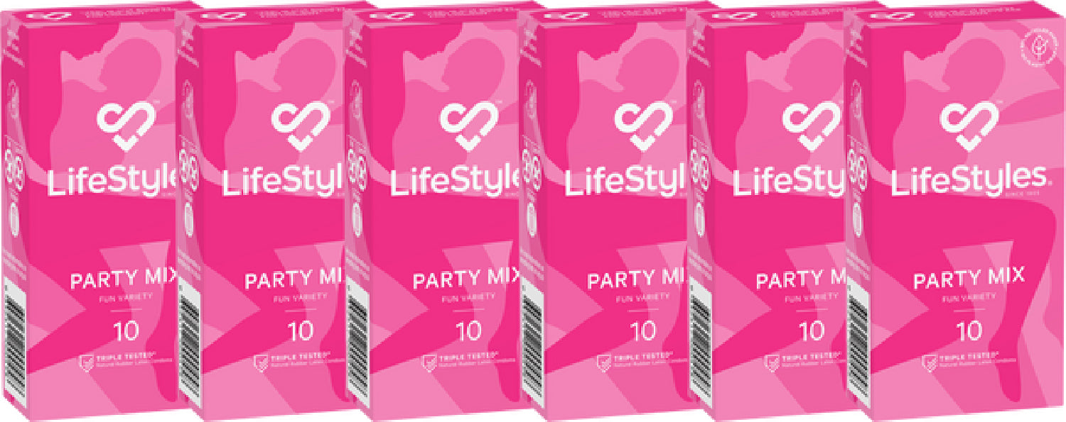 LifeStyles® Party Mix Condoms contain a playful mix of assorted condoms with different features including colours, flavours, and textures.