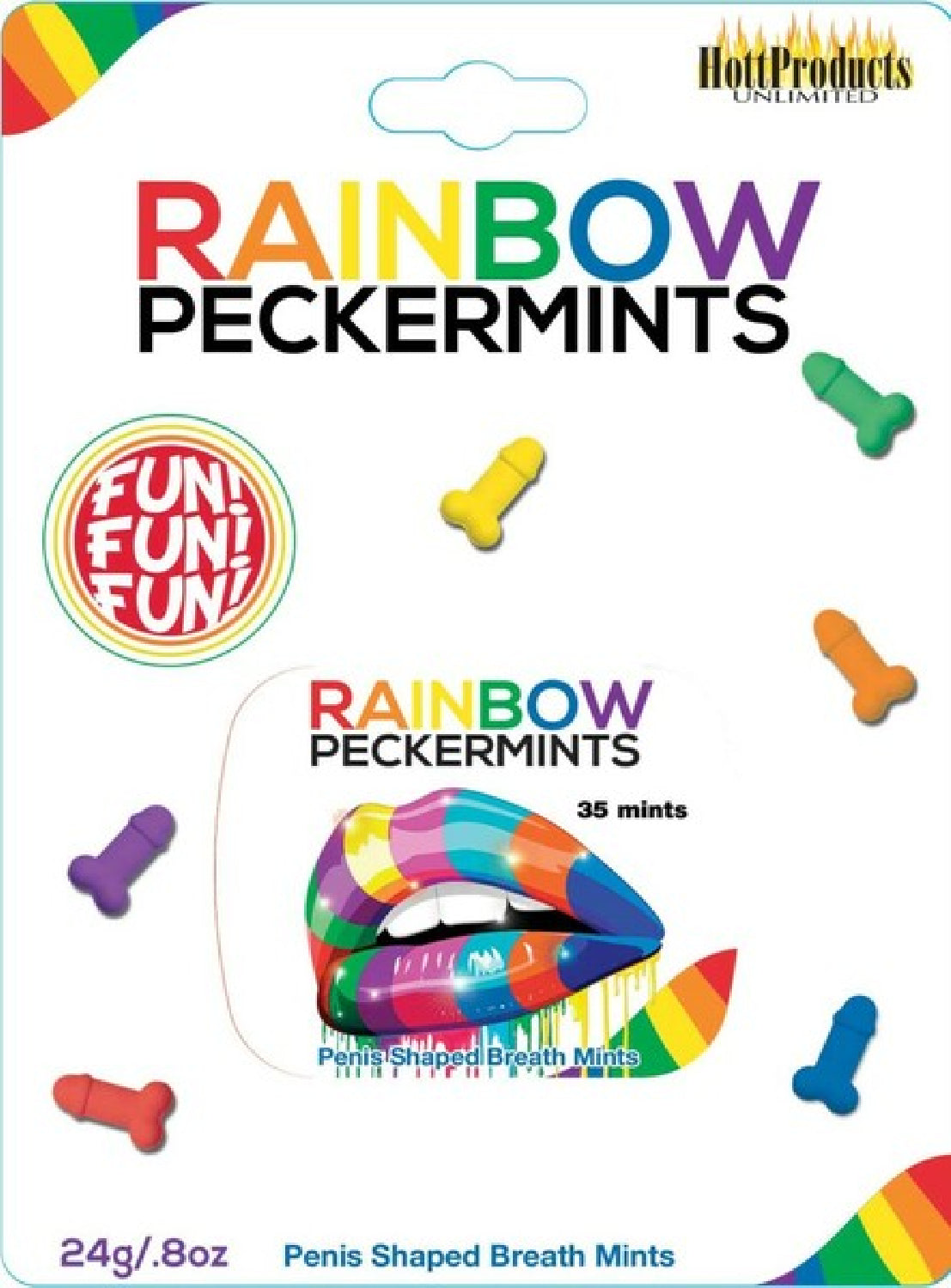 Want breath as fresh as winter snow? Try a PECKERMINT and you’re “good to go!” Rainbow Colored Penis Shaped Breath mints.