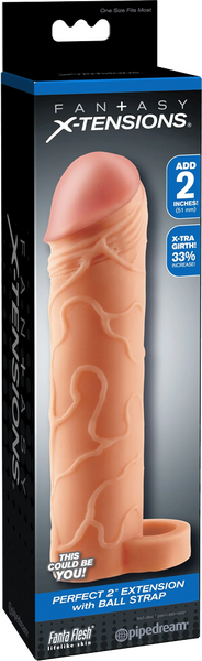 With the ball strap wrapped snug around you, you'll prolong ejaculation for the most explosive climax you've ever imagined. Your partner will enjoy deeper penetration with the 2 in. extension at the tip, while the ultra-lifelike shaft makes you 33% thicker to offer a fuller feeling and exceptional climax. It's super-stretchy to accommodate most sizes, is tight enough to help you last longer, and the super-soft Fanta Flesh® material feels like a second skin. Perfect for men with ED and midway performance problems.
