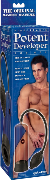 Scientifically developed by European urologists to dramatically increase penis size and performance, the Potent Developer will give you the size and confidence you've always dreamt about without any harmful side effects. Each squeeze of the medical-style pump ball, your pleasure rod will swell with power.