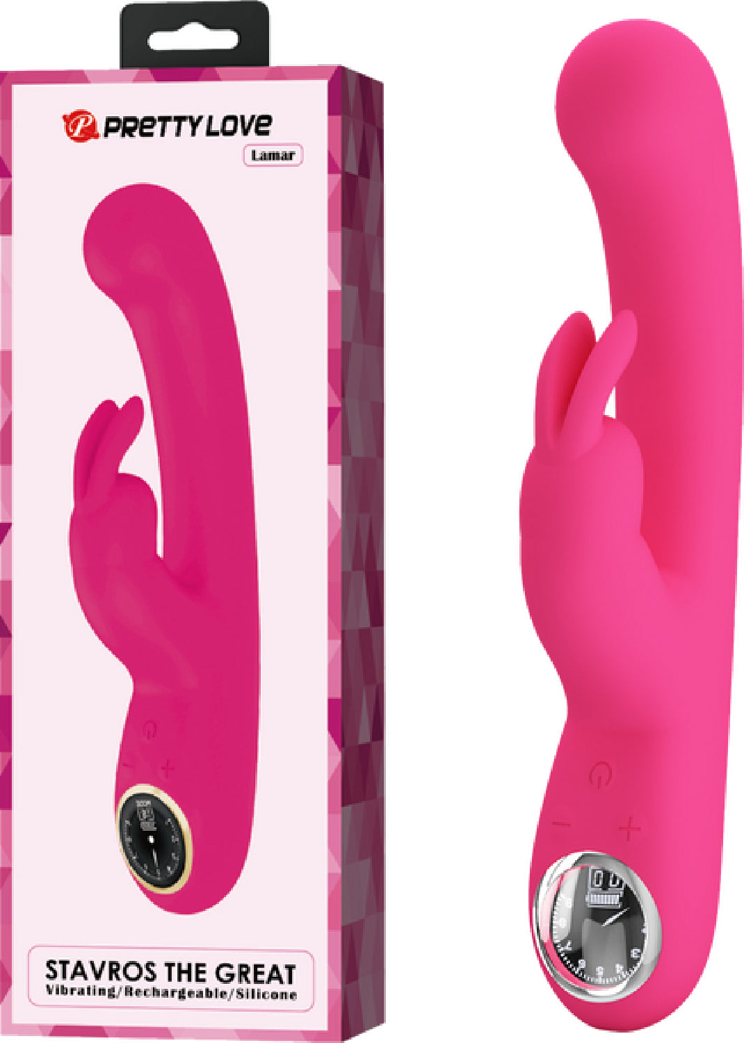 This vibrator is designed with a curved shaft great for G-spot stimulation, while its solid shape allows for more sensation when moving in and out of the body. The solid external rabbit vibrator allows the user to get focused clitoral stimulation. It has an easy-to-use digital LCD screen shows your settings and battery level.