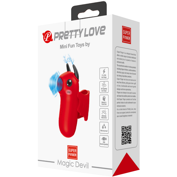 The rechargeable magic devil pleaser fits perfectly on the tip of your finger, so you can enjoy an orgasmic bliss. Take full control over your play session with just one touch and let the playful tapping do the work. This mini toy is made of silicone, features 1 E-stim setting and 10 tapping functions.