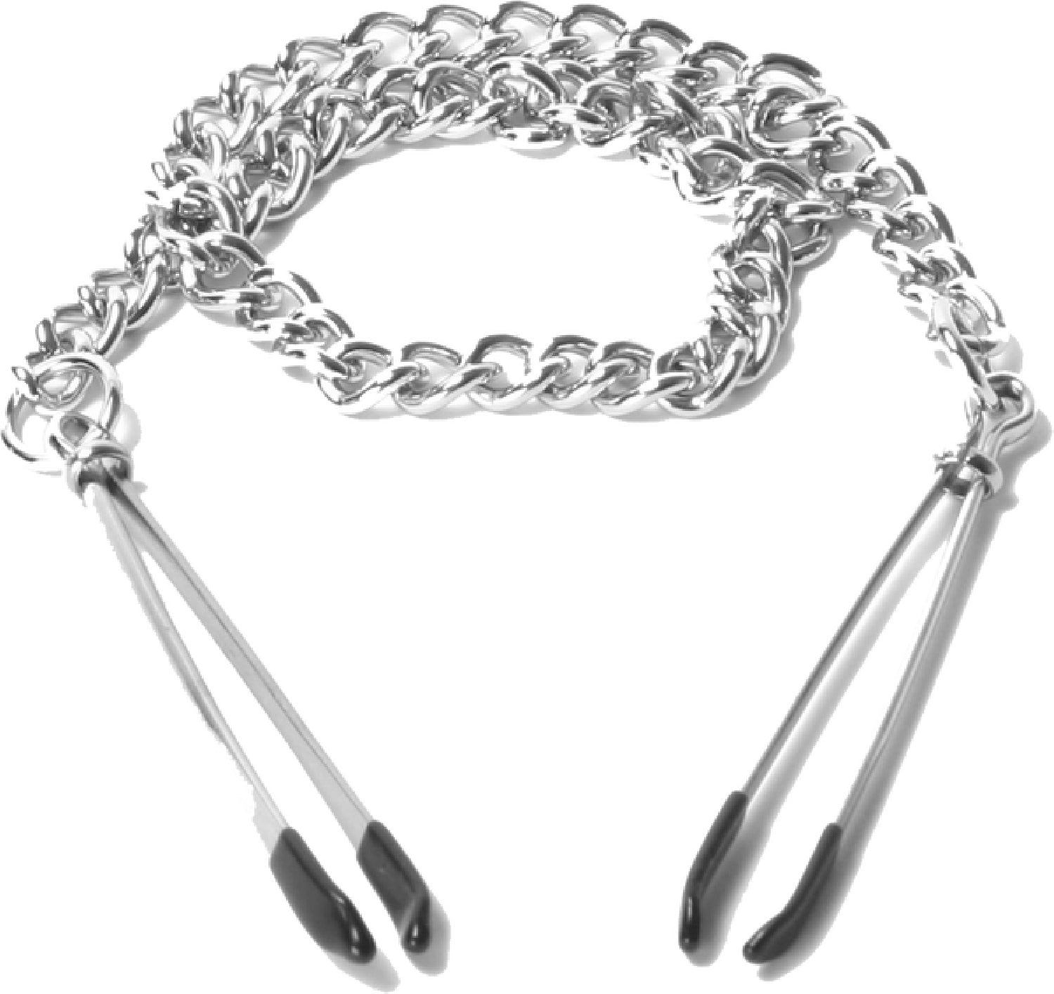 Features: Tweezer Style Clamps, Rubber Coated Tips, Chain Connector