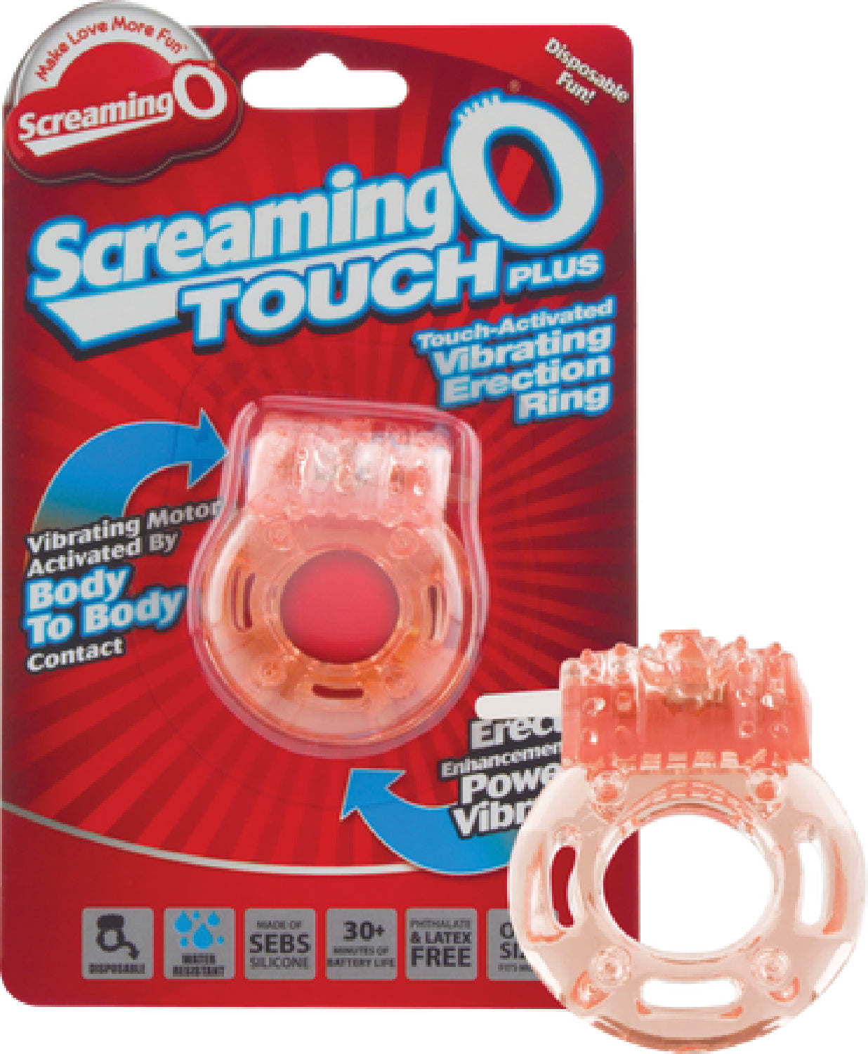 Screaming O Touch Plus is a disposable vibrating ring with a powerful motor activated by the pressure of body-to-body contact and a stretchy, comfortable erection ring that keeps him harder longer. Its disposable design makes it portable and perfect for any intimate adventure at home or on the go.