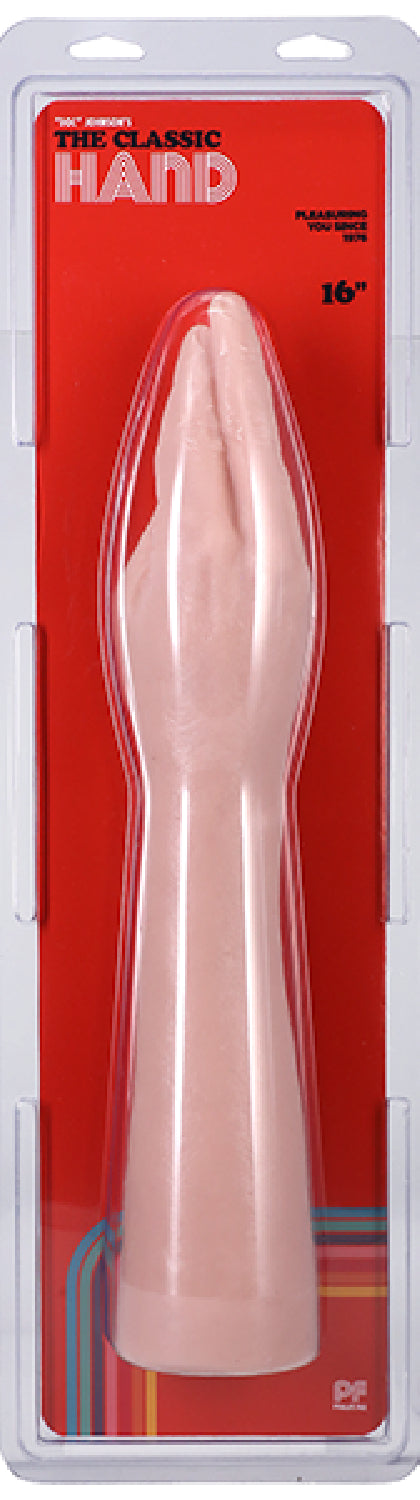 Play with the hand you're dealt! The 16" Hand from Doc Johnson is a replica of a man's hand with duck-bill closed fingers and a full-length forearm. The flexible Hand is suitable for anal and vaginal adventures. It is made from phthalate-free body-safe material, Available in White. The Hand is proudly made in America.