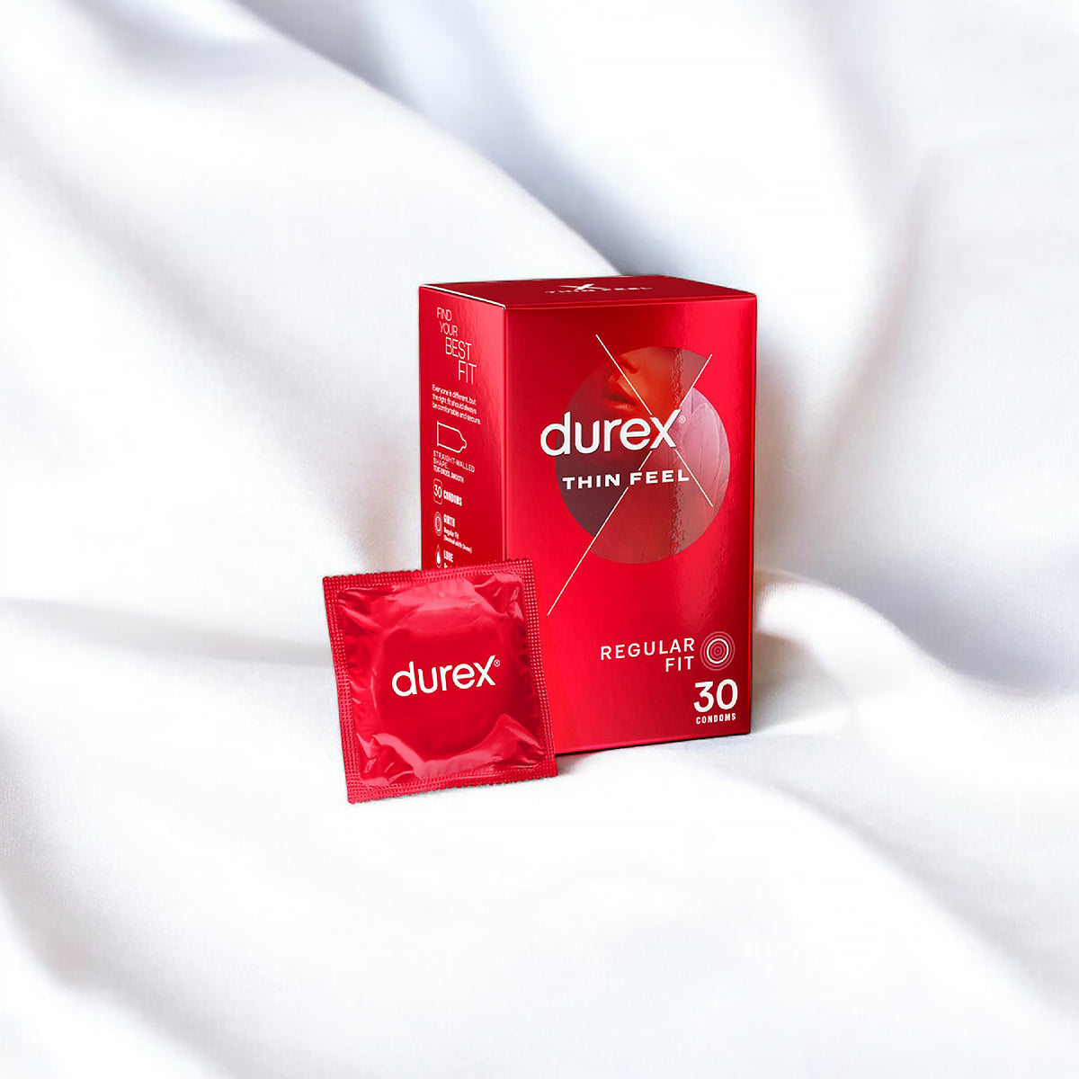 Everyone is different, but the right fit should always be comfortable and secure. Durex Thin Feel Condoms are 20% thinner than our Durex Original condoms. They're shaped to be easier to put on and thinner so you can feel even more than our Original condoms. Durex Thin Feel condoms offer even more sensitivity through ultra thin thickness. Dermatologically tested. 100% electronically tested with five more quality tests carried out on every batch. Comes in pack of 30.