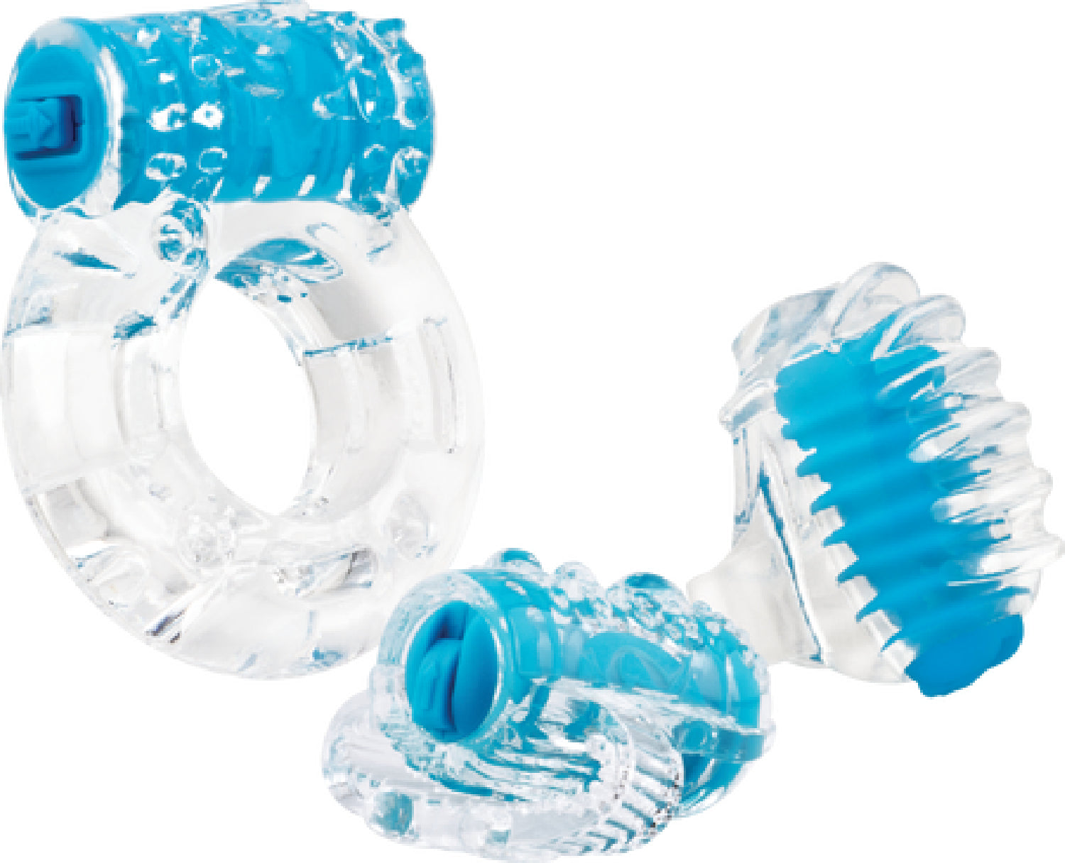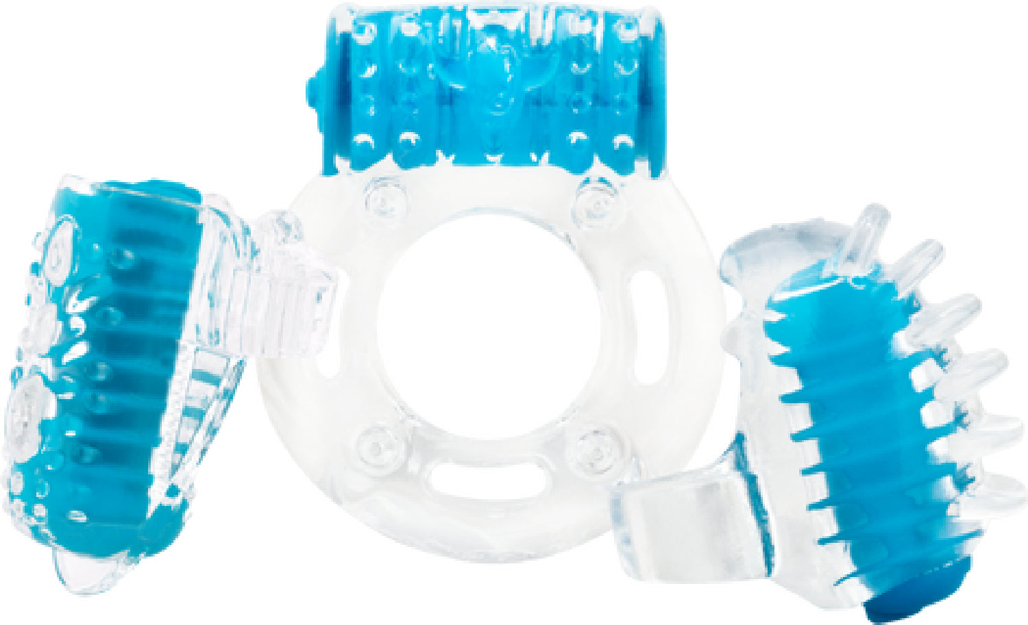 The VibrOman is the ultimate sex toy starter kit for couples exploring vibration in all its forms. This convenient collection offers him a 3-point upgrade with three powerful mini vibes designed to stimulate in very different ways. The mini tongue vibe stretches to fit around his tongue to add a vibrating boost to any cunnilingus session. The mini fingertip vibe sits at the end of any finger and makes it easy to tease, tickle and massage every erogenous zone – especially the clitoris to help orgasms come easier during intercourse! And the vibrating ring makes his whole package vibrate thanks to a super-stretchy ring that fits comfortably around his penis and testicles. When worn with the motor sitting on top, he can stimulate her clitoris with every thrust and intensity her pleasure in some of her favorite sex positions. All three powerful vibrators are made with lab-tested SEBS material for a quality and body-safe experience and are completely disposable, so you can take your VibrOman home or on vacation and leave the evidence behind!