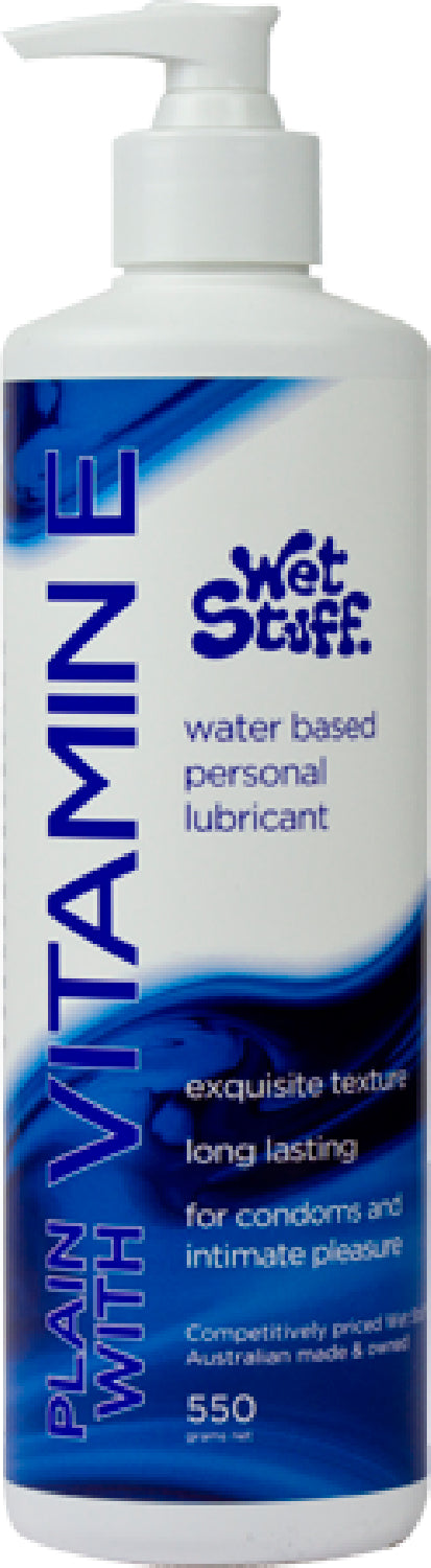 Wet Stuff with Vitamin E is a long lasting, exquisitely textured, clear water-based lubricant, designed to enhance your intimate pleasure. The modern update of the original Wet Stuff formula. Excellent to supplement your natural sensitivity of condoms.